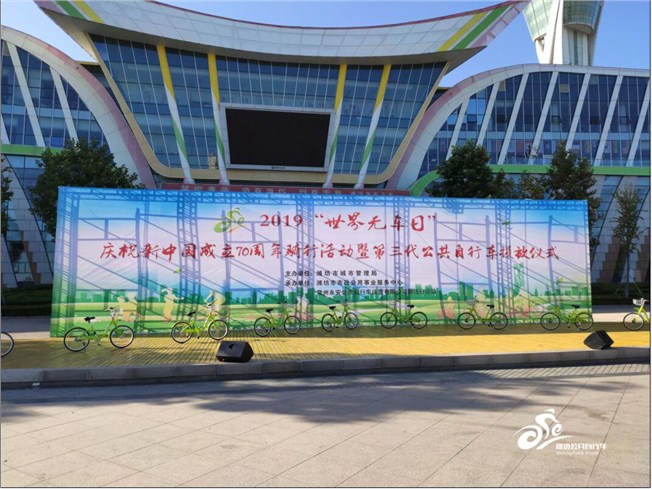 为倡导绿色文明出行,传播“低碳生活、绿色出行、文明出行”的生活理念,提升市民参与环保行动的积极性,进一步促进城市生态和谐发展,9月22日由潍坊市城市管理局、潍坊市市政公用事业服务中心主办,常州永安公共自行车运营有限公司潍坊分公司承办的2019年“世界无车日”庆祝新中国成立70周年骑行活动暨第三代公共自行车投放仪式在人民广场成功举办,共计150余位热心市民参加了本次主题骑行活动,并集体合唱《歌唱祖国》和《义勇军进行曲》,庆祝新中国成立70周年。
