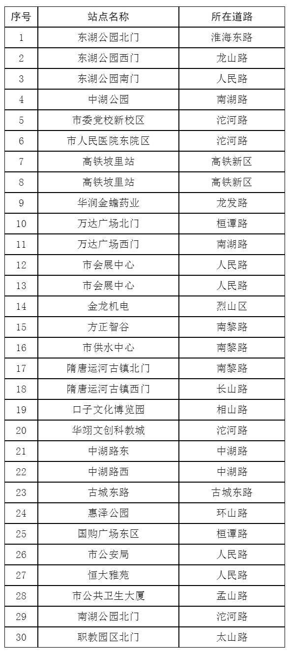 目前,新增的30个站点开始陆续投入使用,具体如下。